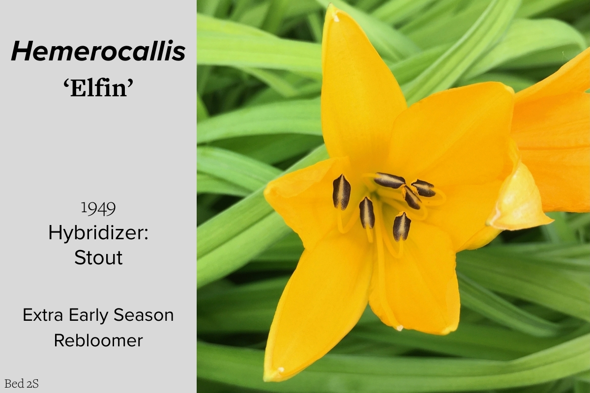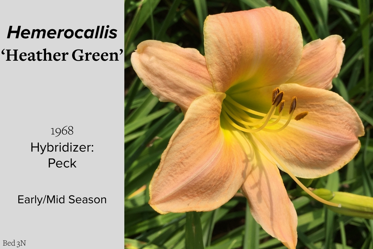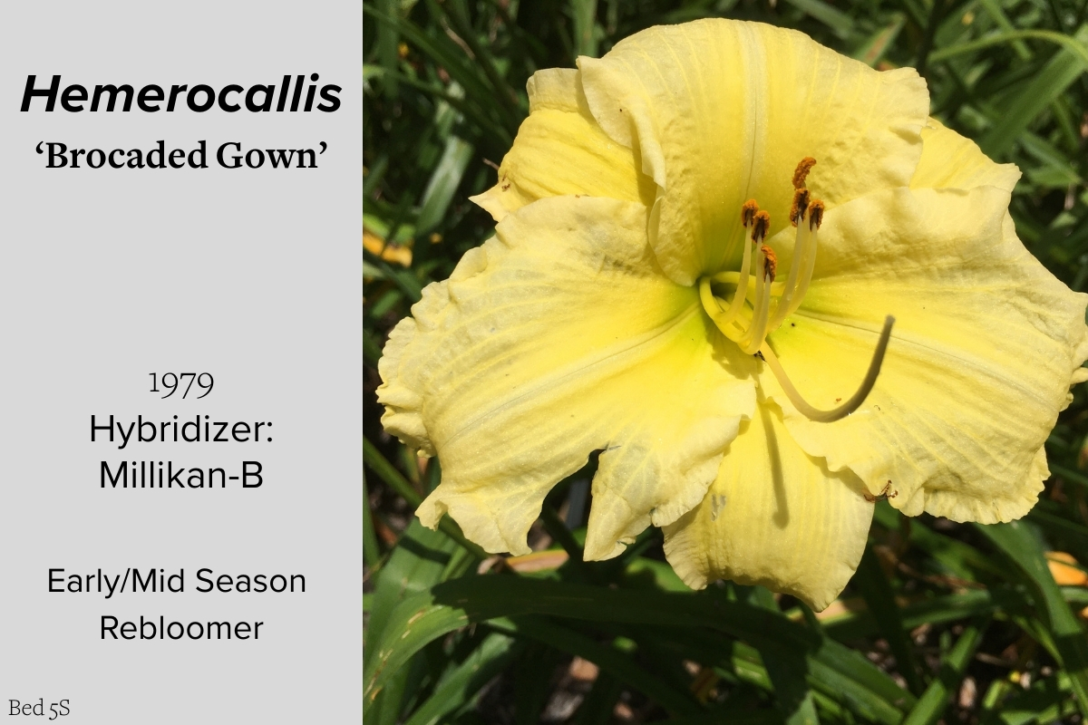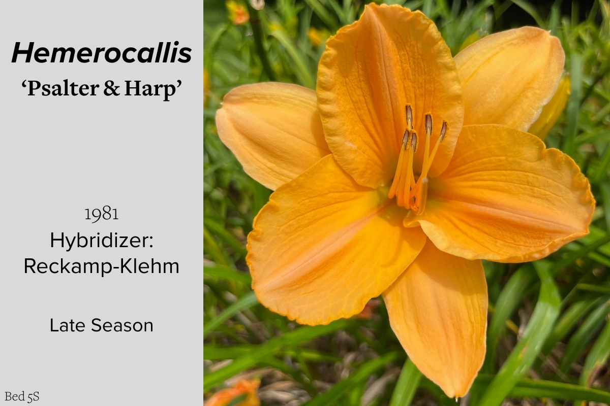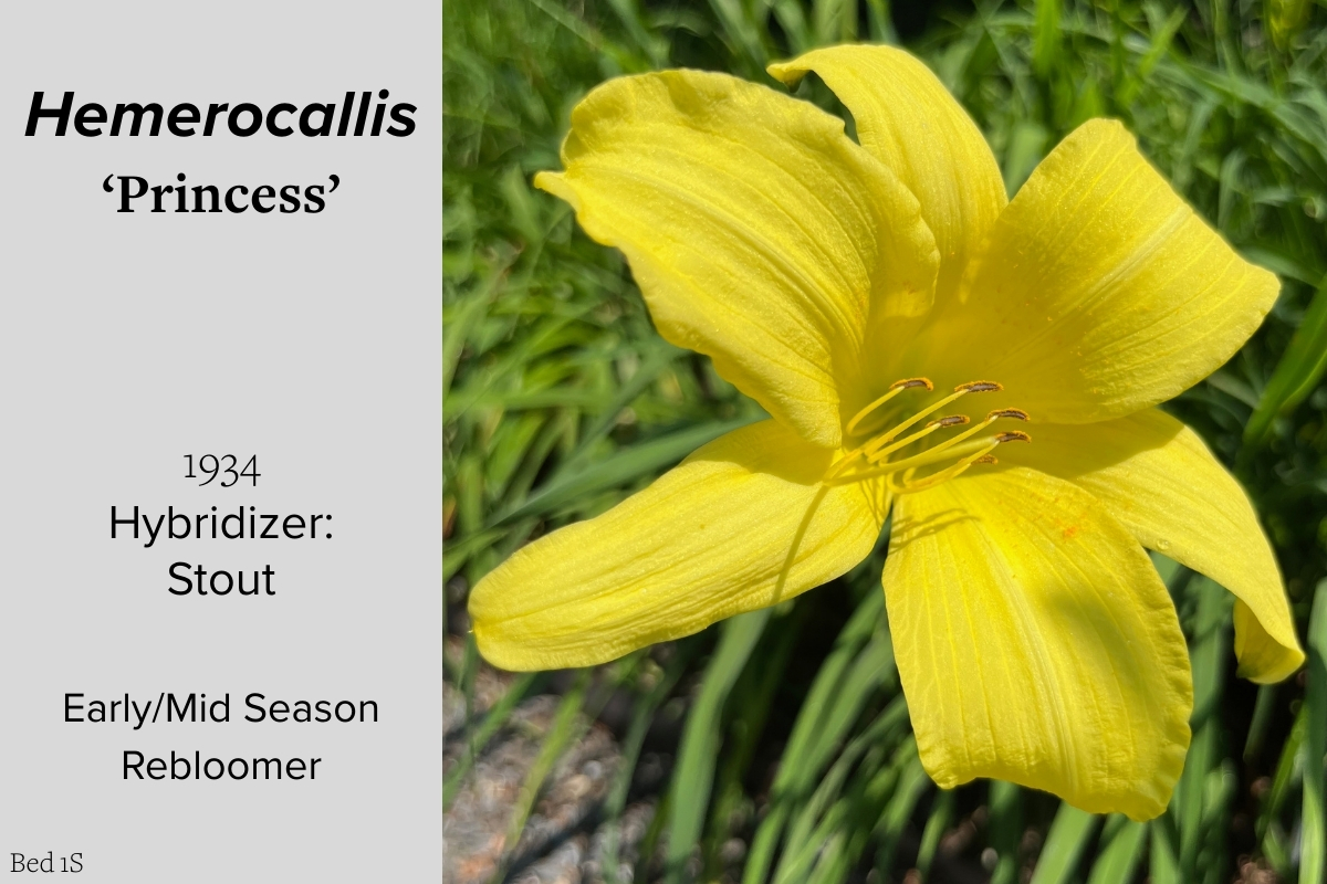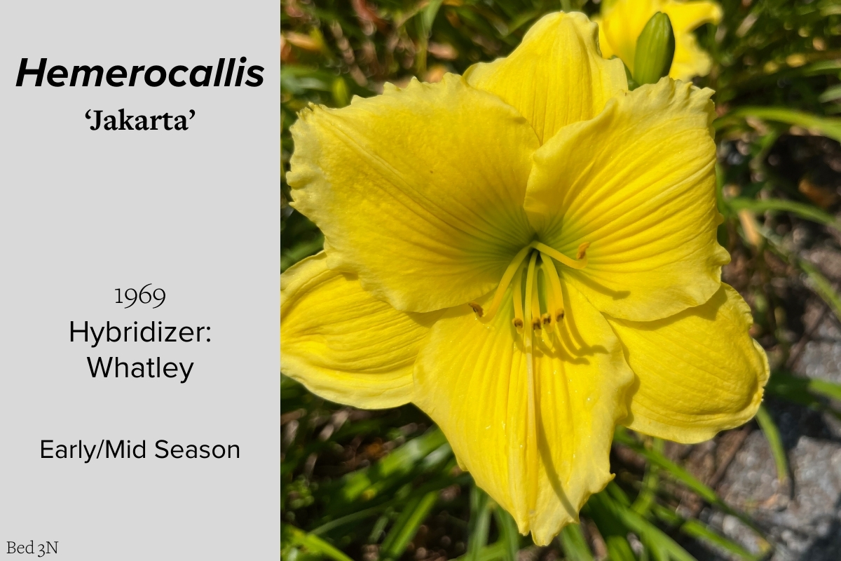 Our collection of 200 daylily cultivars is organized chronologically by the year each was registered with the American Hemerocallis Society. Just beyond this sign at the top of the walk, are six forms of wild daylilies that represent the pure species from which the cultivars were derived.