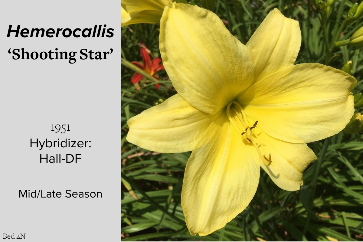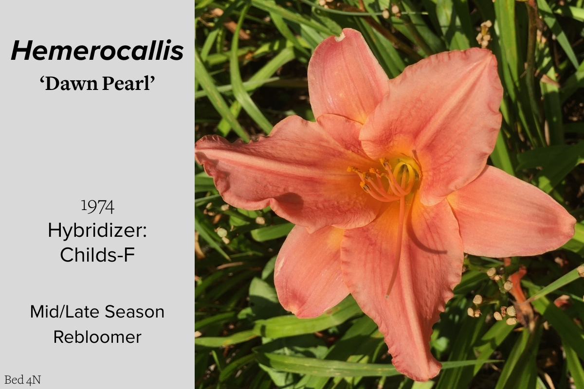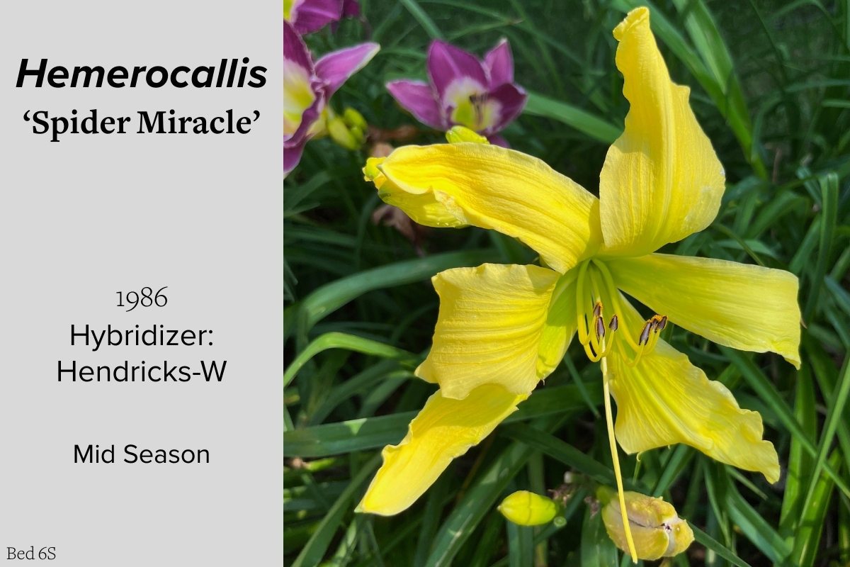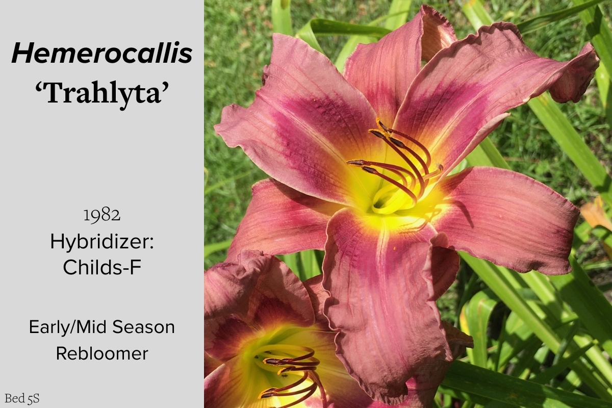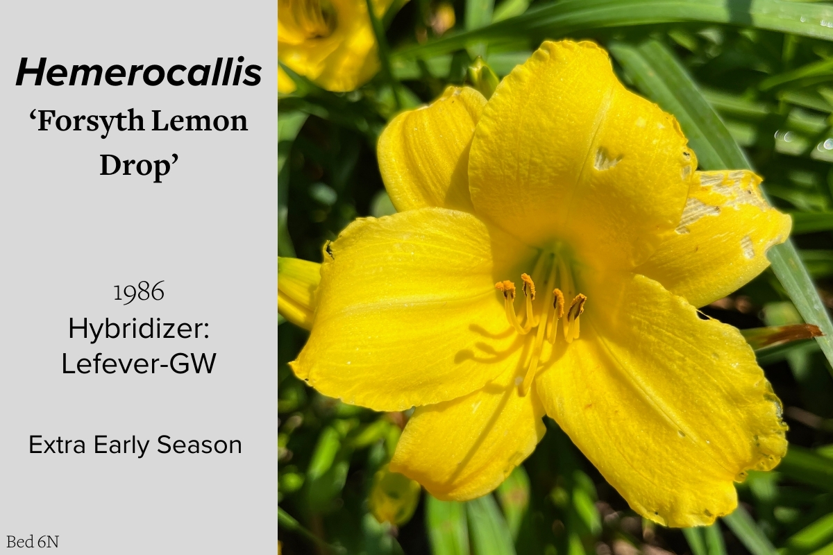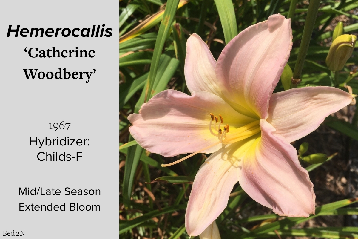 Our collection of 200 daylily cultivars is organized chronologically by the year each was registered with the American Hemerocallis Society. Just beyond this sign at the top of the walk, are six forms of wild daylilies that represent the pure species from which the cultivars were derived.