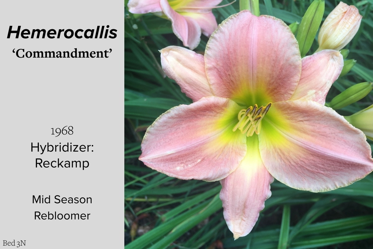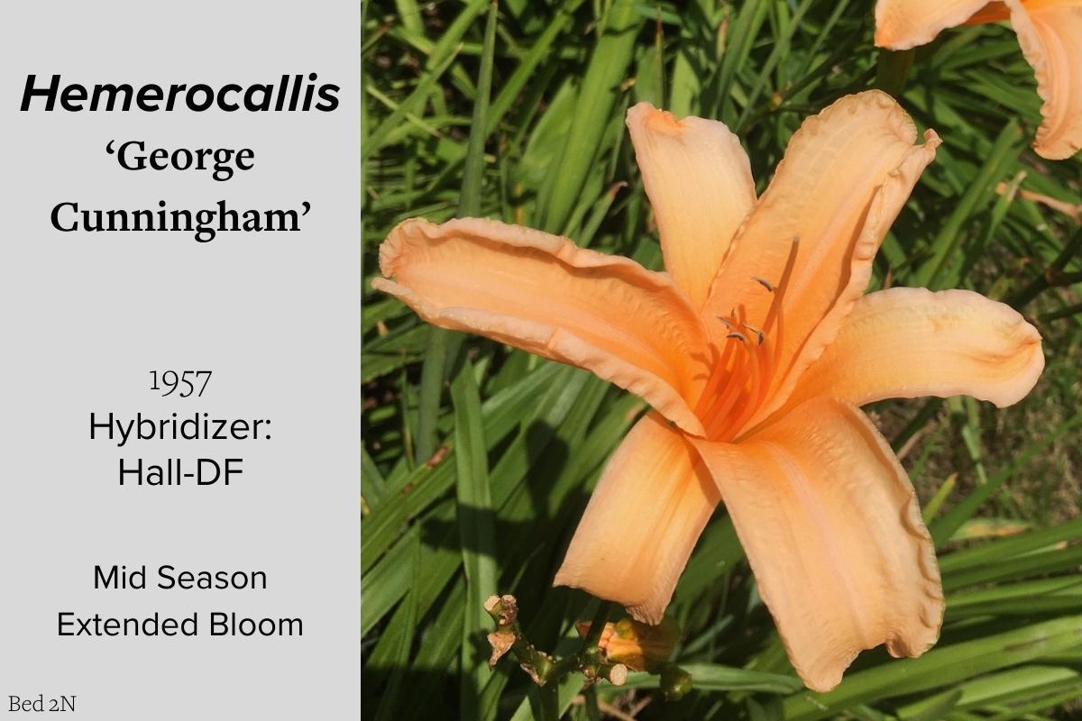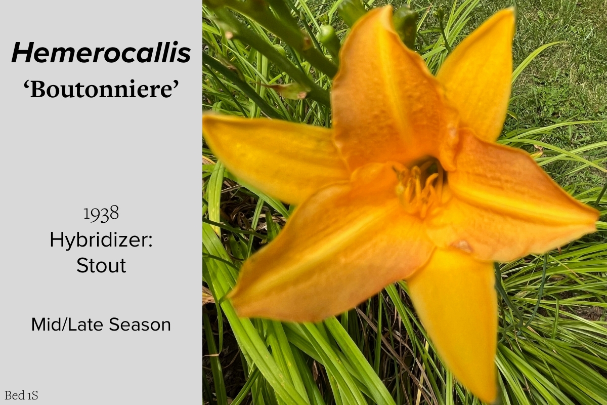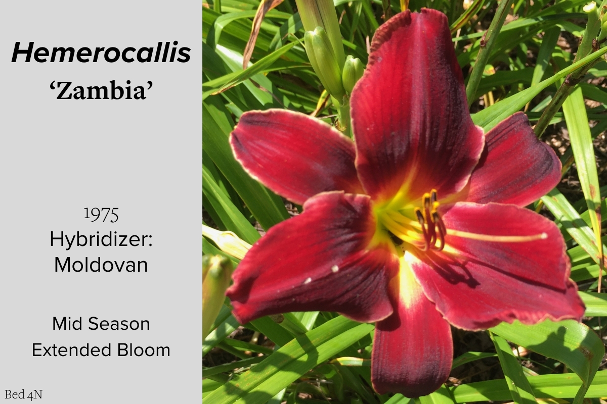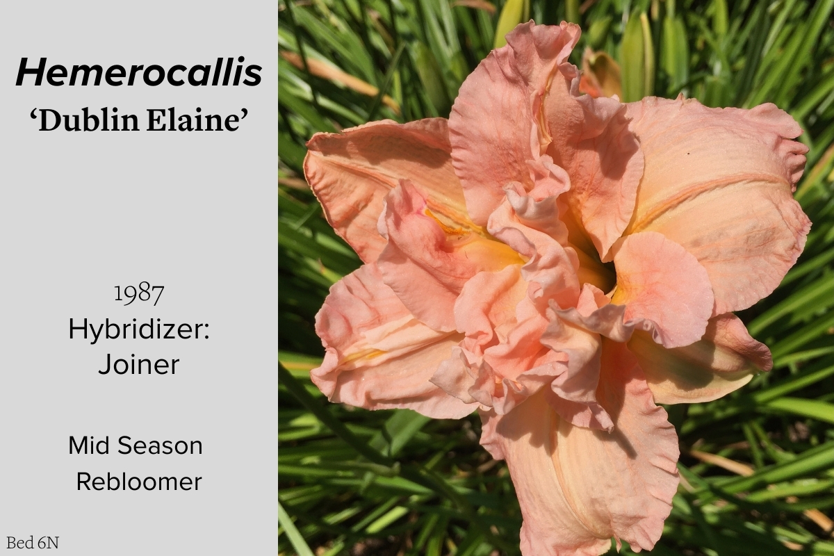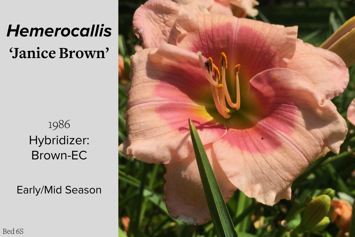 Our collection of 200 daylily cultivars is organized chronologically by the year each was registered with the American Hemerocallis Society. Just beyond this sign at the top of the walk, are six forms of wild daylilies that represent the pure species from which the cultivars were derived.