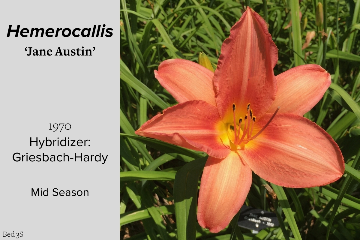 An American Daylily Society Display Garden featuring more than 200 historic and modern cultivars from more than 120 years of hybridizing. The daylilies are organized chronologically by date of introduction and put on a great show in July and August. Designed by Dorthe Hviid, 2003.