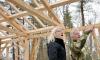 Brockway, of Berkshire Wood Products in Windsor, Mass., is one. Adam Miller, a carpenter and consultant from Vermont, is the other. Miller took Larkin’s plans and designed a final building, utilizing his expertise in timber and log framing and complicated, innovative work in organic form scribing. The main 30-foot-by-50-foot portion of the Farm in the Garden Camp building will function as an unheated pavilion. It will be sheathed in vertical boards. Its creative design will best be appreciated from the inside where traditionally planed and squared-off Eastern White Pine timbers will be twinned with a structural support system that incorporates varying species and sizes of tree forks, those Y-shaped sections of trees that bifurcate in the trunk and give rise to two roughly equal diameter branches.