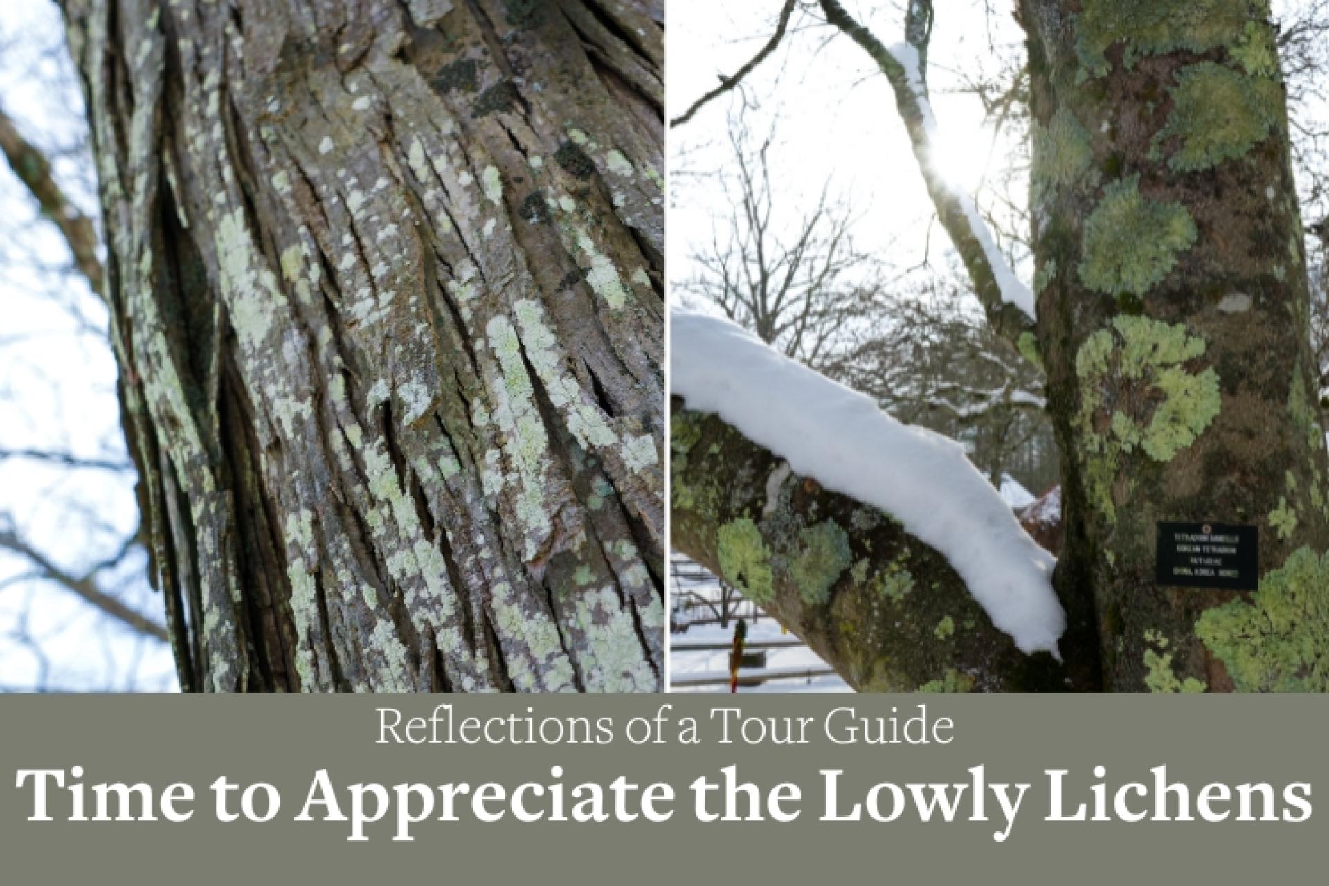 Even on our mid-summer BBG tours, when tree canopies are fully leafed out, visitors will comment on the lacy tapestries of lichens on trunks and low-slung branches of some of our prettiest specimens. We are sometimes asked what these decorative features are. And even if visitors have seen them before, they often voice a concern for the tree’s health. They frequently wonder if lichens in their own home landscape is a sign of disease or decline.